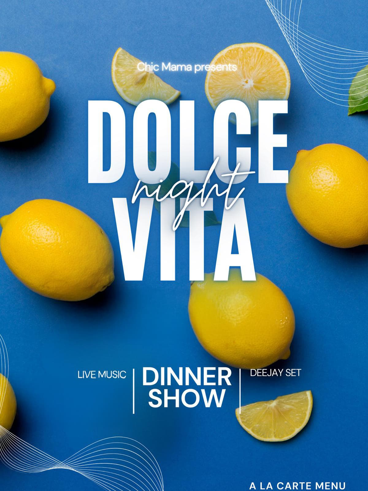 Dolce Vita Night. A unique evening of Mediterranean flavours, a breathtaking setting, and a dinner show inspired by the timeless elegance of the Dolce Vita.